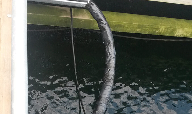 In Copenhagen’s South Harbour, insulation of the water supply pipes for a houseboat presented a special challenge: it had to defy external influences such as salt water, wind and UV exposure and withstand the constant motion of the boat caused by the tide and currents. Even under these most testing conditions, it was possible – thanks to the great flexibility and extreme robustness of WrapTec – to create a permanently 100% watertight and UV-stable covering. It took the installers less than 2 hours to complete, and the pipe could be exposed to water immediately afterwards.